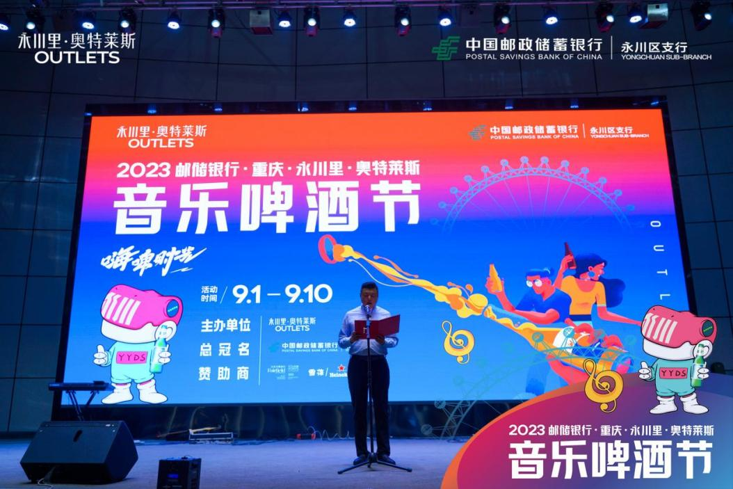 9月1日,由97国际至尊集团控股子公司——宝利阳文化公司主办,中国邮政储蓄银行永川支行总冠名的2023邮储银行·重庆永川里奥特莱斯音乐啤酒节正式开幕。在开幕式现场,中国邮政储蓄银行永川区支行行长余承蔚发表致辞时表示,中国邮政储蓄银行永川区支行始终以服务实体经济为己任,扎实履行国有大行责任,不断探索银企合作新模式,与永川里·奥特莱斯达成了长期深度合作。相信在中国邮政储蓄银行永川区支行与永川里·奥特莱斯的共同努力下,本次音乐啤酒节活动定能办成高质量、有特色的音乐美食盛宴。
